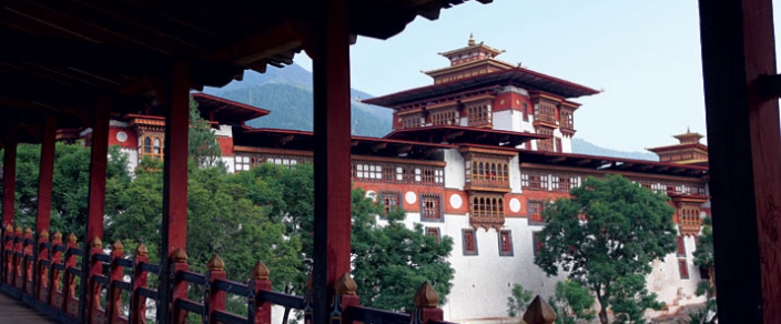 This morning, travel out the castle-monastery of Simtokha Dzong, the first built by Zhabdrung (in 1629AD) and said to guard against a demon that escaped into the nearby rock. Next, climb the winding Dochula pass (3,100m) through beautiful tropical forest and sparse villages. The pass is marked by 108 chortens or stupas – built in memory of Bhutanese soldiers killed fighting Indian insurgents in 2003 – and gardens of colourful prayer flags. On the clear day you’ll enjoy magnificent views of the Eastern Himalaya, including Gangkhar Puensum, perhaps the world’s highest unclimbed mountain. The scenic Punakha Valley is drained by the Pho Chhu and Mo Chhu (meaning 'Father' and 'Mother' Rivers) which enjoys a temperate climate which is ideal for farming. Punakha was the capital of Bhutan until 1966. Here you’ll visit the white-walled, red-roofed Punakha Dzong, the administrative and religious centre and winter retreat of His Holiness, Je Khenpo – the chief abbot of Bhutan. This six-storey high monastery is one of the largest dzongs in Bhutan. Construction began in 1637, although sections of it have been restored after floods in 1994. The Dzong boasts intricately carved woodwork, prayer halls and beautiful religious paintings on walls and doorways. Notes: Total driving time today is approximately 2 hours 45 minutes.