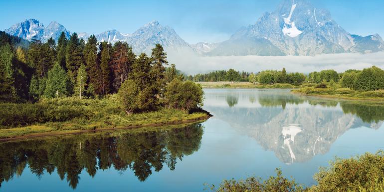 Stop at Jenny Lake in Grand Teton National Park and take in the tranquil surroundings.