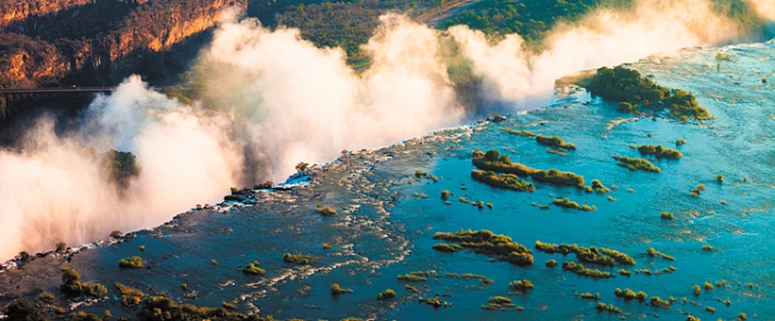 This Independent Experience begins at Livingstone Airport, where you will be met by a Peregrine representative and transferred to your lodge (approximately 30 minutes). The afternoon will be free to spend at your leisure. Take a stroll around town named after the first European to look upon the falls, and book with local tour operators any optional activities that you’d like to do while you’re here. In addition to visiting the falls, there are many optional activities you can do in Livingstone to discover why the area is so deserving of its reputation as a centre of adventure. On the water you can canoe and kayak along the upper Zambezi, or white water raft on the river below the falls with some of the best rapids in the world. On land you can take morning and afternoon game drives or walks in the Zambezi National Park, home to some of Africa’s most iconic animals. For something a little more hair-raising there are rope-based activities around the gorge, or a canopy tour that provides spectacular views of the rapids, spray and Victoria Falls Bridge. If you want an even more incredible view, then maybe take a jaw-dropping helicopter flight over the falls and the Zambezi Gorges. Alternatively, a great range of curio and craft shops provide a pleasant distraction for those seeking a less vigorous kind of day. Your accommodation is a lodge overlooking the Zambezi River and Siloka Island – enjoy a sundowner to kick-start your Livingstone adventure.